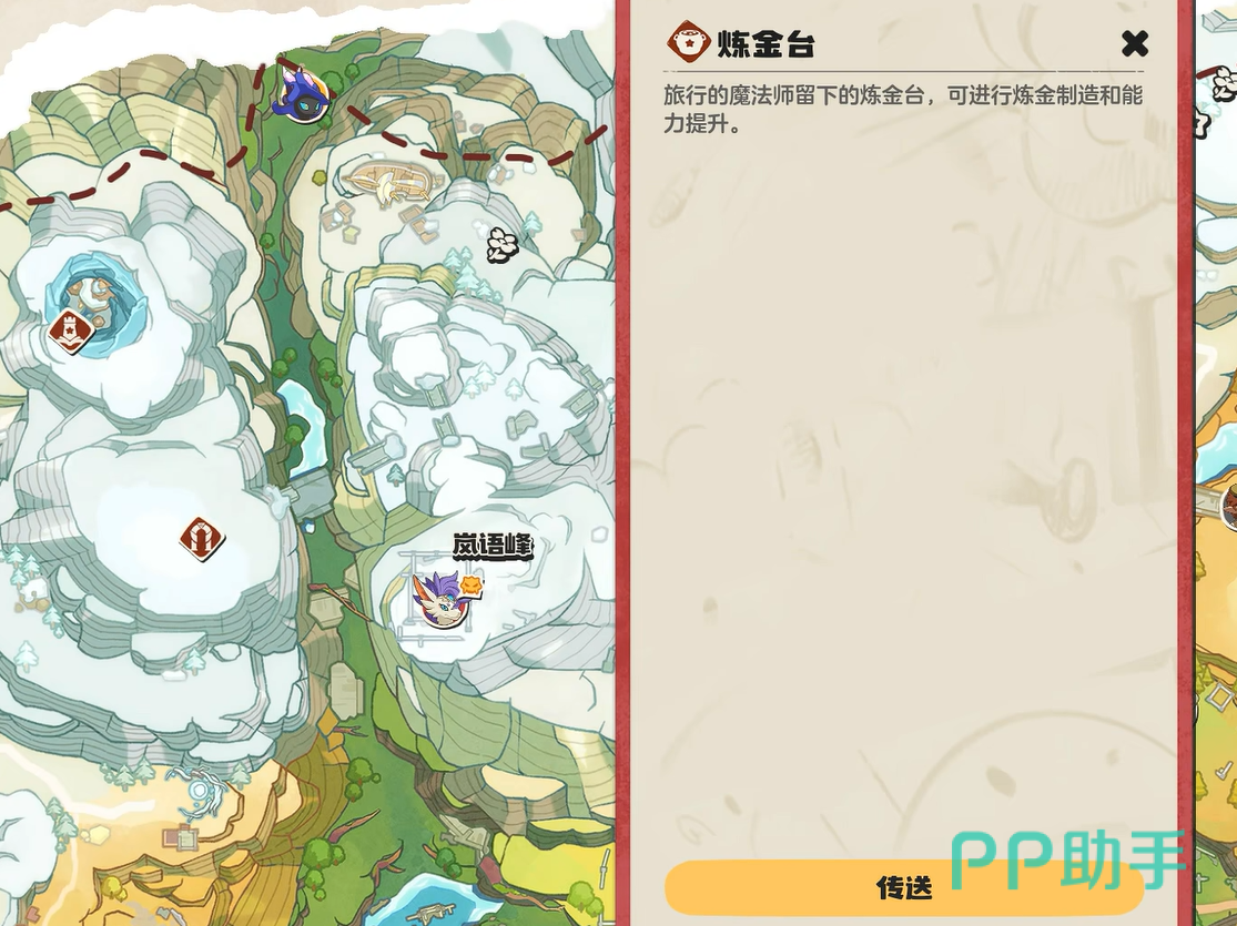 想要捕捉这只精灵的话,大可以先打开地图m。接着直接来到左上角的炼金台,也就是一处雪域中。作为旅行魔法师所留下来的一处炼金台,大家都习惯在这里进行炼金,制作各式的装备并提升自身的能力。