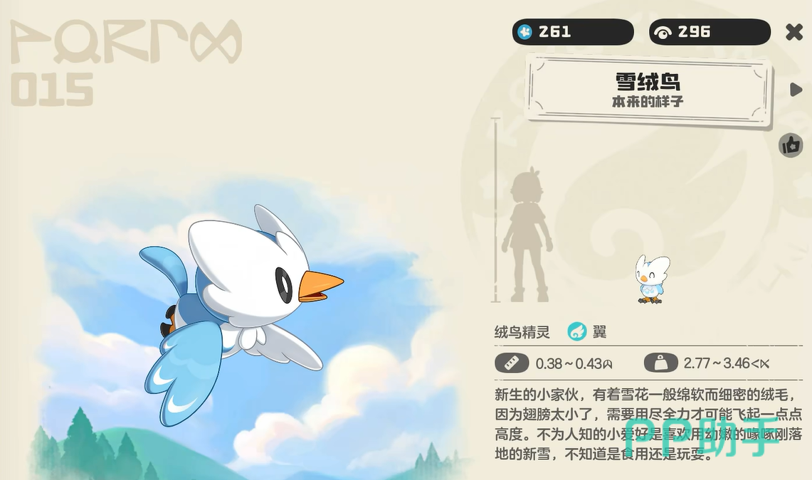 接着大家打开自己的背包,再找到雪绒鸟的鸟蛋。就可以点击孵化,孵化出来就是雪绒鸟。不过大家想要获得更加强大的精灵就可以进行进化,需要不断喂养就能升级,达到阈值之后便可进化了。