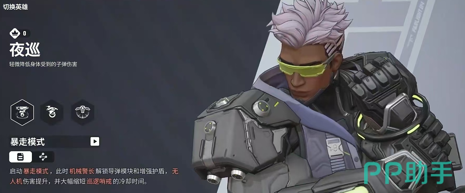 夜巡能够召唤出机械警长来在场上进行侦察,警长会驻守在指定地点,对进入警戒范围内的敌人进行自动攻击,还能更改位置。其他技能可以召唤出无人机,对指定位置进行侦测,发现敌人后直接冲向对手爆炸,造成伤害和减速效果,并使敌人暴露位置,夜巡在追击敌人时还能获得加速效果。梅歇尔是通过声波来进行侦查,直接将敌人位置暴露出来,声波还能造成伤害,大招能在选定位置生成一个舞台,周围有单向屏障环绕,为队伍提供保护作用,也可以提高视野。