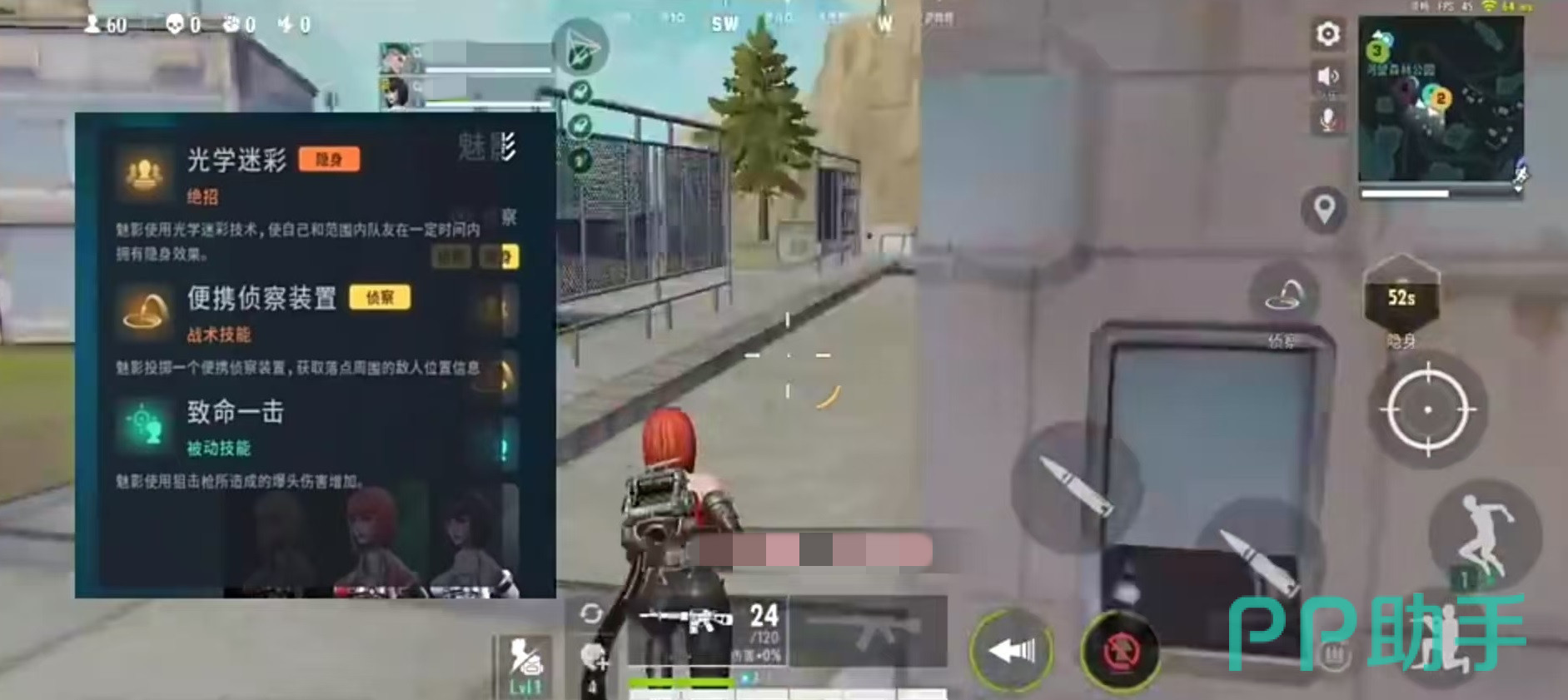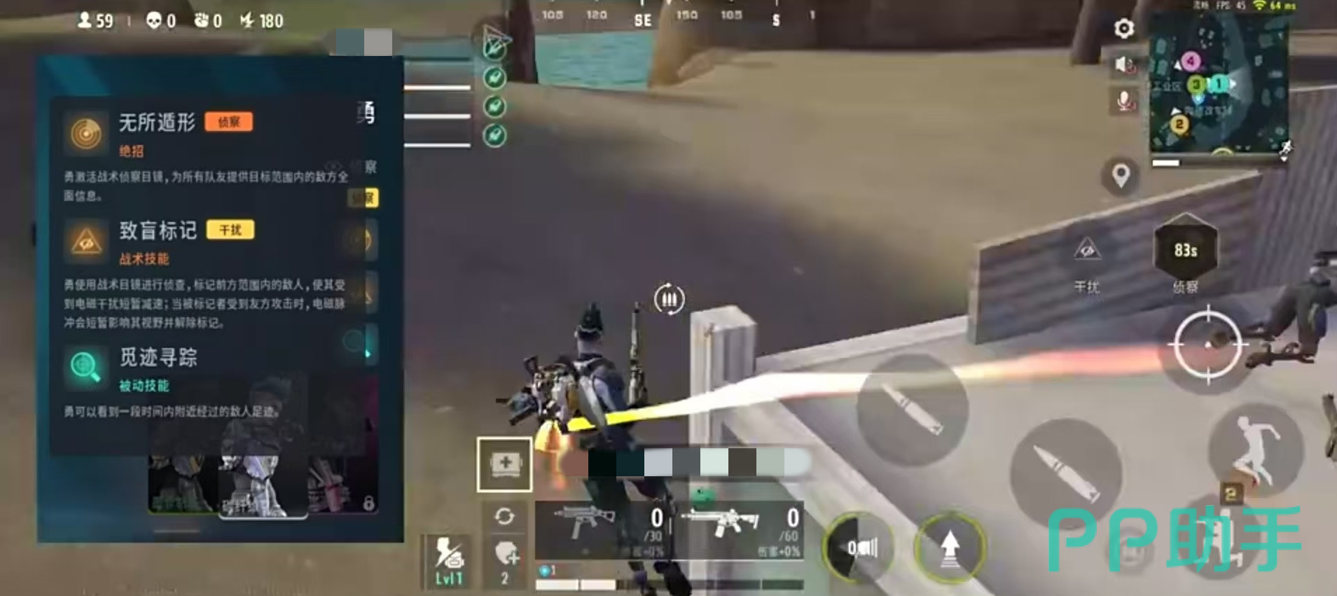 Mk2的被动技能和大招需要配合使用,大招布置一个跳伞装置,mk2弹射到空中进入跳伞状态,对某个范围进行扫描,将范围内敌人信息获取出来。另一个技能还能自动对面前范围发射火箭炮攻击。魅影能使用狙击枪,战斗中远距离爆头伤害很高,战术技能可获取大范围内敌人的信息共享给队友。