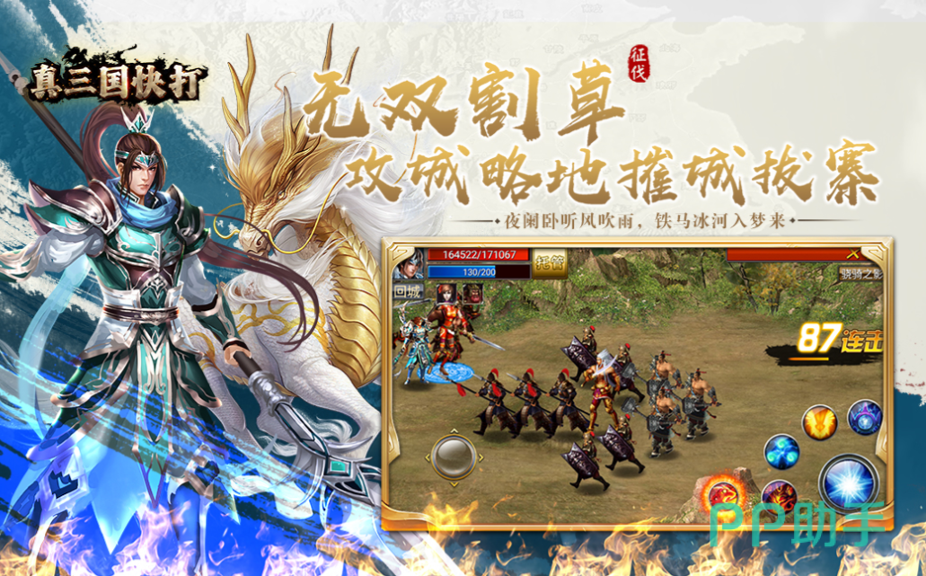 真三国快打是基于真实三国背景开发的横版ACT游戏,操控三国武将展开割草战斗冒险的设定超爽,觉醒技能和众多流派加持打击感更强,每个武将的战术动作行云流水具备不俗观赏性,重温街机时代操作手感的机制也是本作亮点,绚丽技能效果辅助让整体画面光效别具一格,街机格斗游戏粉丝可尝试下真三国快打!