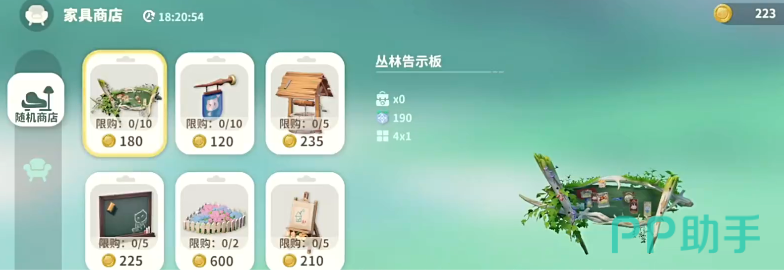 接着大家来看一下他的家具商店中,都在出售什么东西吧!首先在他的家具商店中,大家可以买到丛林告示板。用了它就可以在丛林中粘贴各种或者其他的信息,最多的话,只可以买上十个,之后就可以随意在不同的地方张贴告示。