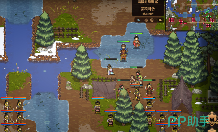 最后兵种之间也是存在着克制关系的,步兵能够克制骑兵,而弓兵又能够克制步兵。并且不同的兵种在不同的场地中也能够发挥出优势,如果是在森林场景中的话,那么弓兵就能够被隐蔽起来,但是如果他们在水中行走,那么移动速度又会得到大幅度的降低。