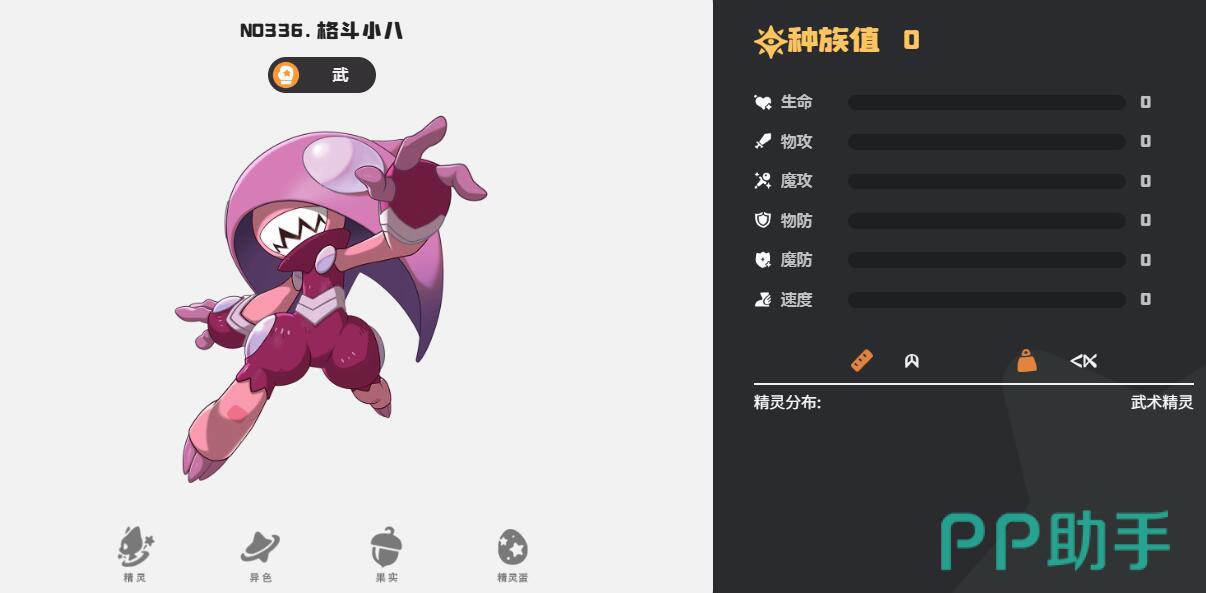 6.格斗小八:防御向武系精灵,特性受身可在防御时提升速度,技能遁地能减少90%伤害。推荐性格淘气或慎重,搭配反击类技能如硬门,在持久战中表现突出。