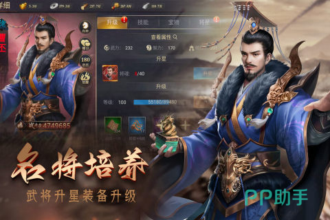 画面细腻玩法丰富的历史武将类模拟游戏,剧情上忠实还原三国志原作,玩法上加入了武将角色模拟与统帅军事对抗内容。玩家可以招募多个传奇武将来统领军队攻城略地。每位武将还可全面强化提升战力。