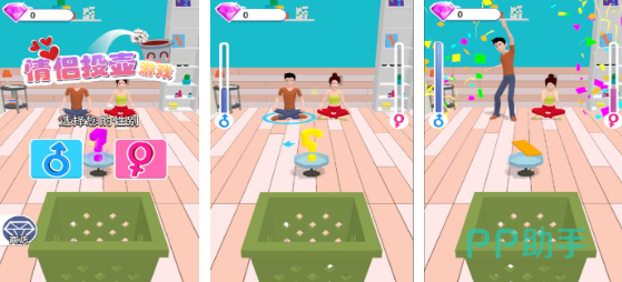 情侣来一场刺激的投壶比赛吧。画风较为简洁,整个元素都带有一定的卡通感,玩家和对象进入到同一关卡中,选择不同的性别就可以开始挑战。物理技术比较成熟,投壶的距离可以随意设置,玩家在熟练后可以站在更远的地方进行投壶挑战。在体力消耗完,谁投中的数量越多,谁可以取得胜利。