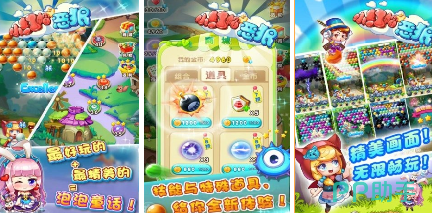 小红帽在森林中意外遭遇到邪恶的大灰狼,为了摆脱危险玩家必须利用各种工具来击败恶狼。游戏采用闯关制与泡泡消除类玩法,可挑战关卡丰富且都拥有各种奇特的道具。玩家在成功挑战关卡后会不断解锁新剧情,还有精美装扮可以使用,更加让人充满期待。