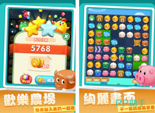 这款属于大家熟悉的消除为主要内容的,有很多可爱设计的小动物,仿佛置身于拥有着这些动物的农场一样,享受开心的游戏氛围。除了游戏里面所设置的画面特别的甜美,充满了梦幻的色彩,也有超多闯关的地图,搭配上好听的音乐以及炫酷的音效,使每个玩家都能领略到这游戏所具备的趣味性,还设置了五大道具,帮助你获得更高的分数。