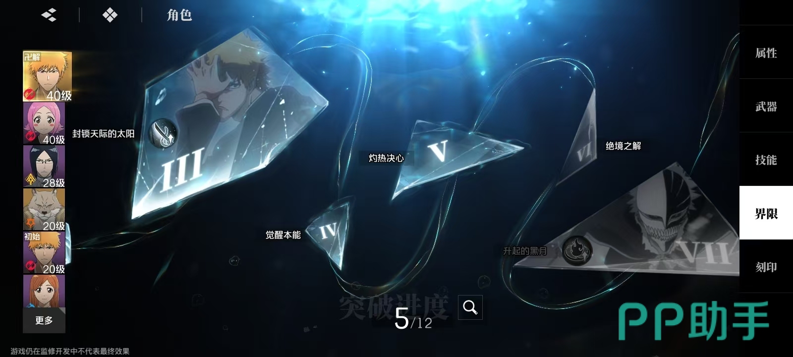 接下来是角色技能等级,提升技能等级后,能够提高技能各种加成,让伤害或其他效果更上一层楼。技能升级需要消耗金币技能书这样的资源,通过游戏中的活动和任务获取,这里就应该优先给主c或者是辅c去提升,辅助可以先放一下,但是也要尽快跟上来。界限和刻印,是战力区分的重要方面。界限激活后可以直接提升角色强度,激活界限需要收集对应角色碎片,抽到重复角色后就会转换成碎片。只要碎片能满足要求就可以激活界限,获得属性加成或特殊效果,应该着重去培养主c。