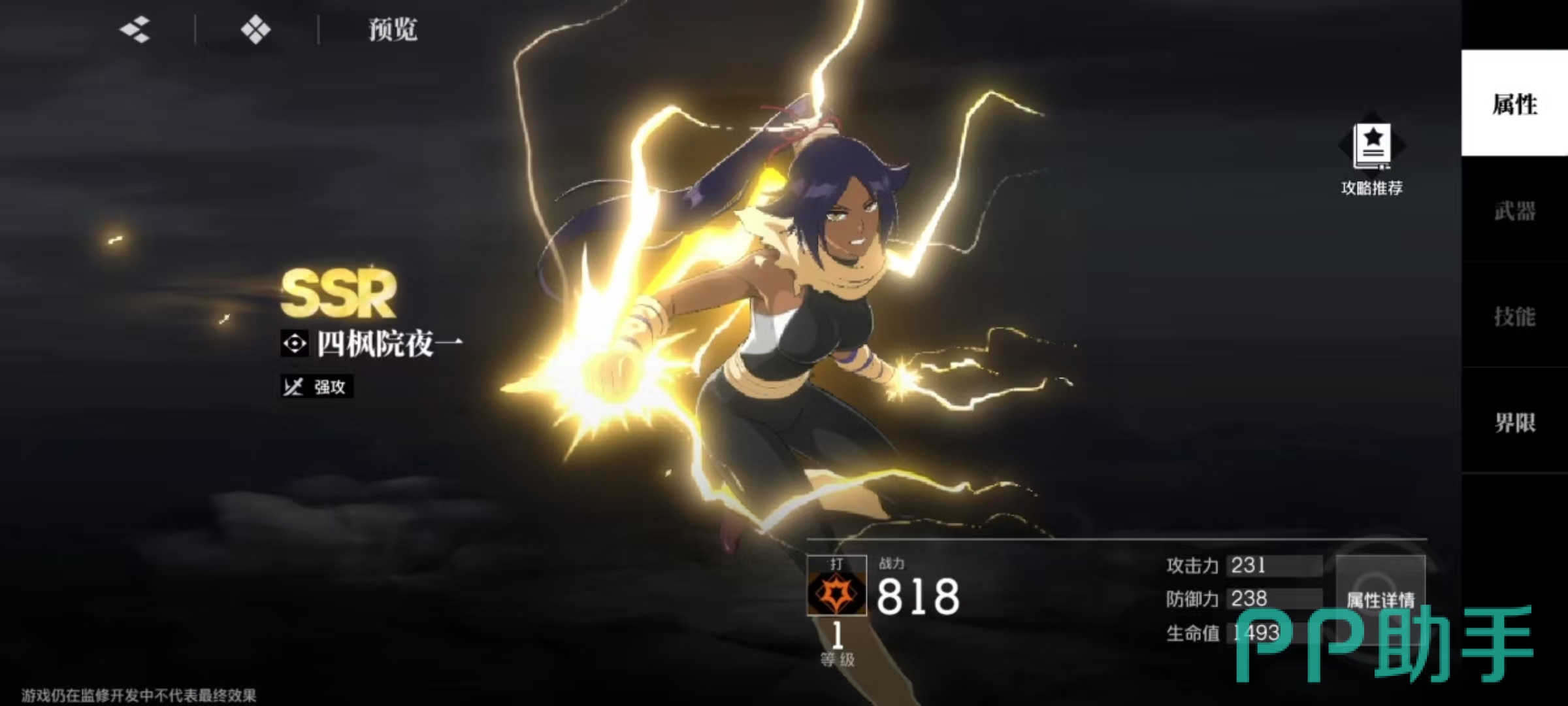 在这一套阵容中,小编选择的主c是夜一,辅C是大狗,辅助是音梦。阵容中的主c和辅c都是属于ssr品质,所以在输出强度方面绝对有保障。先来看一下夜一的主要特点,夜一的普攻可以对敌人造成累积5段伤害,并积攒自身灵压。必杀技可以进入到瞬哄状态,向目标发动强力一击,瞬哄状态持续8秒钟。在这期间,夜一的攻击力提升,灵压值获取效率提升,且可以立即释放一次不消耗灵压的分支攻击。