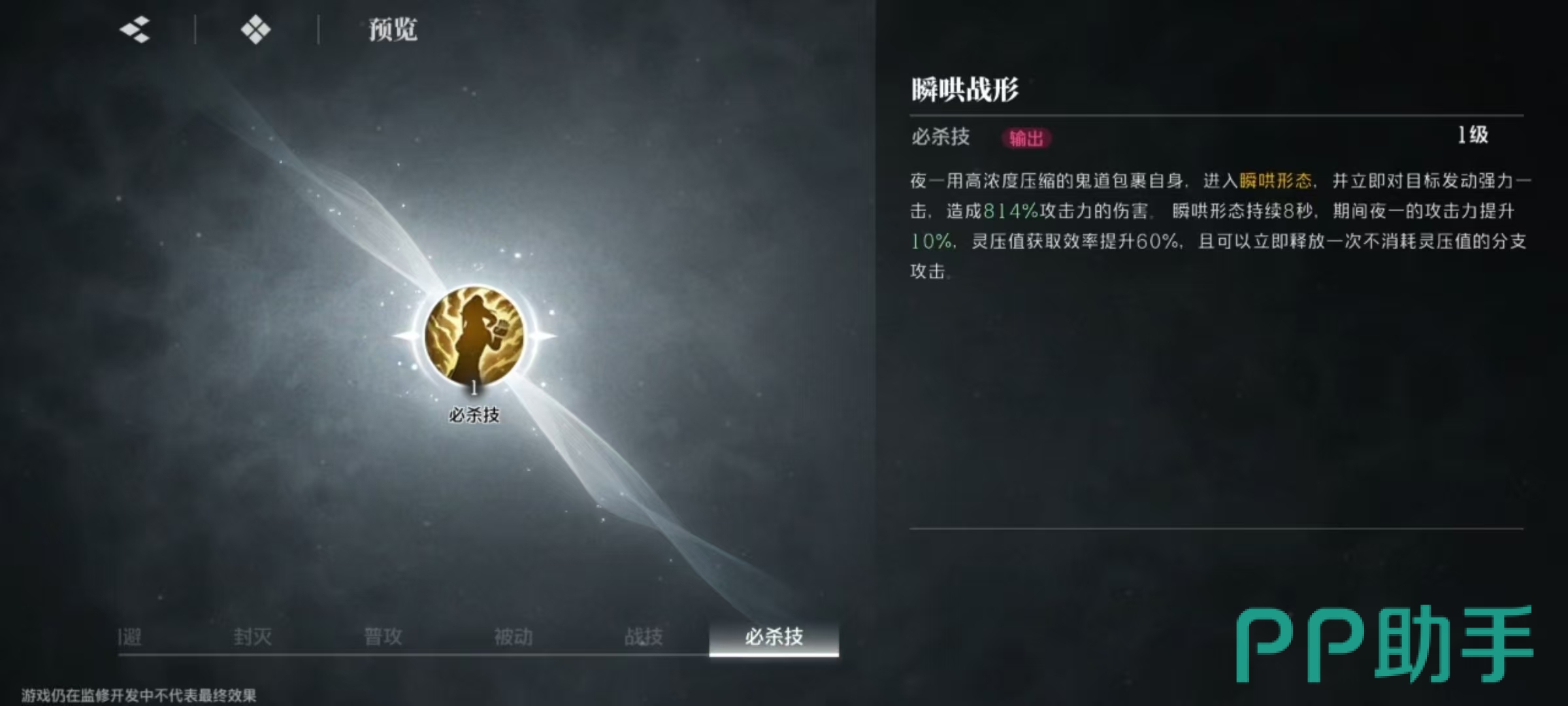 战技效果是利用瞬步直接接近并踏击目标,使用手里剑进行攻击,释放该技能后立即点击普攻,可以追加分支攻击。只要用好这些技能,在输出方面是非常狂暴的,也是目前常用的主C之一。大狗的普攻同样是对敌人造成连续5段斩击,其中第5段普攻释放时,会召唤出天谴冥王一起攻击,并叠加一层业力效果。大狗在近距离输出和战术支援方面都很优秀,可以大幅度降低敌人打系抗性,在队友攻击时可以召唤出天谴进行协同,叠加业力层数。终结技根据业力层数,对敌人造成巨额伤害。