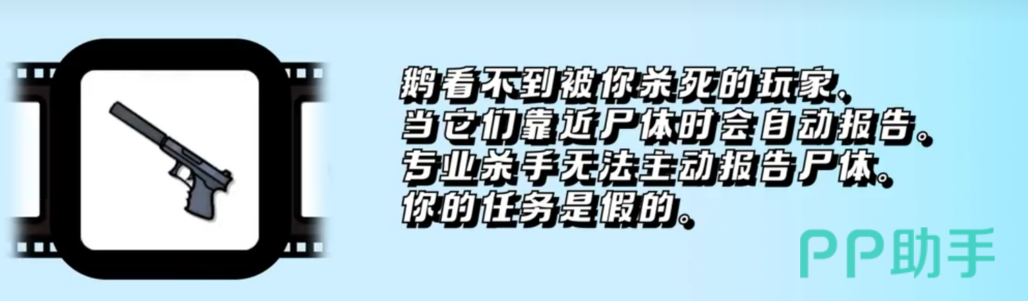 而在游戏中玩家一旦抽到了杀手鸭子这个角色,就拥有了非常强力的主动技能,杀手鸭子能够靠近别的角色并且瞬间消灭一名角色,玩家只需要在别的玩家附近点击技能按键就能够使用,但是玩家需要注意不要在人多的地方使用,身份一旦被发现就会被别的玩家投票出局。