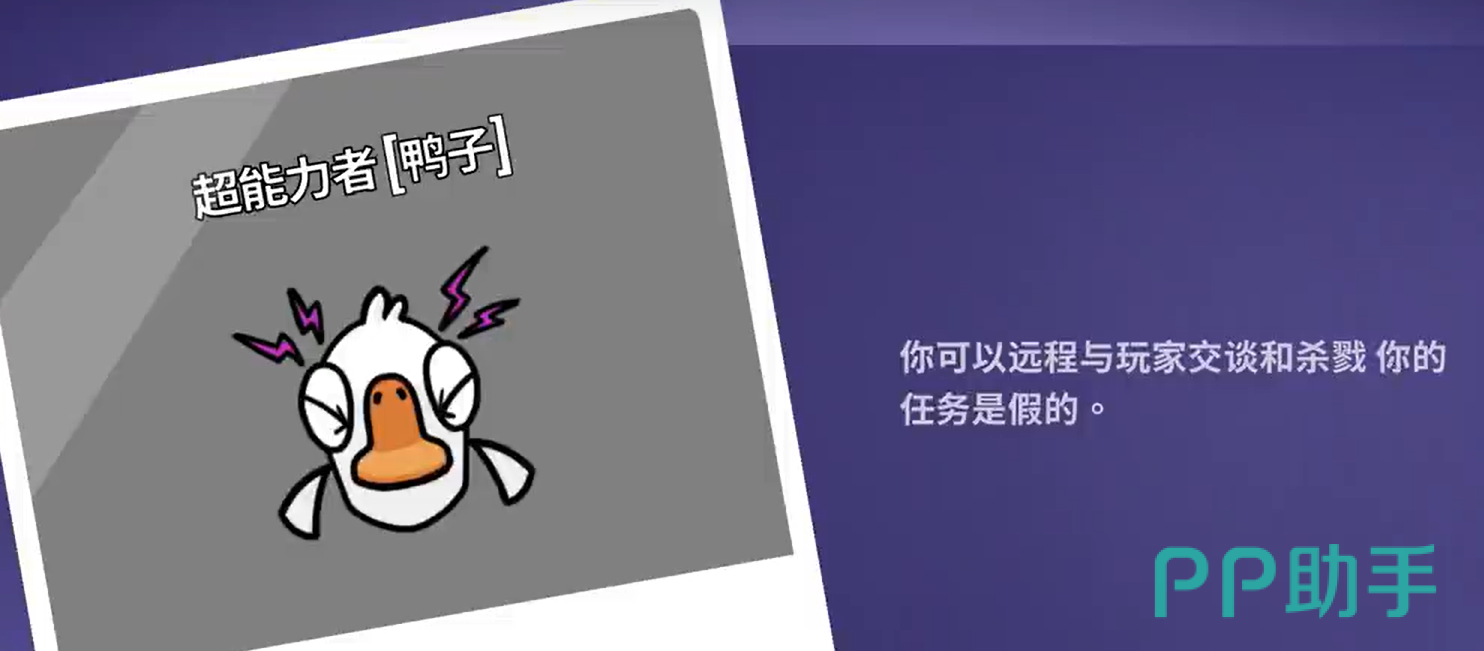 游戏中有的玩家会分配到鸭子阵营,这个阵营的玩家会获得对应的角色技能,其中一部分的角色技能是被动技能,其中包括死后立刻发言,或者被投出才能够获得胜利。