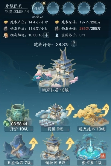 以上就是踏风行建筑升级攻略分享的内容了,在踏风行这个修仙游戏中,玩家的多个玩法其实也都是围绕在角色加快修炼的速度从而达到突破境界的目的,其中洞府中各个建筑板块也是为了加快角色的修炼进度。