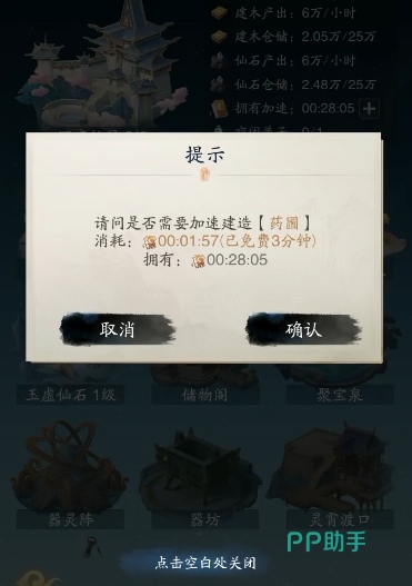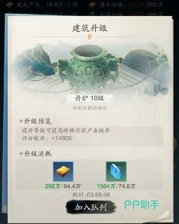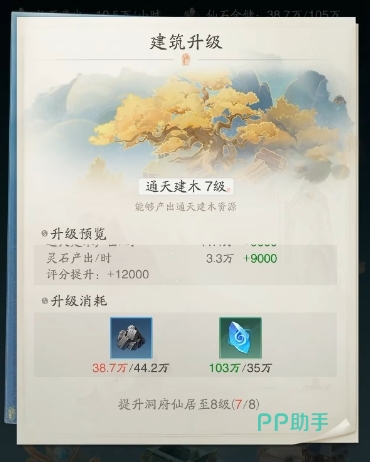 在这些建筑的升级上基本上以消耗石材、木材和灵石为主,所以说在升级时有限升级“通天建木”和“储物阁”,一个用来生产灵石和木材,一个用于存储这些道具资源,不过在升级时也会受到洞府本身的等级限制。
