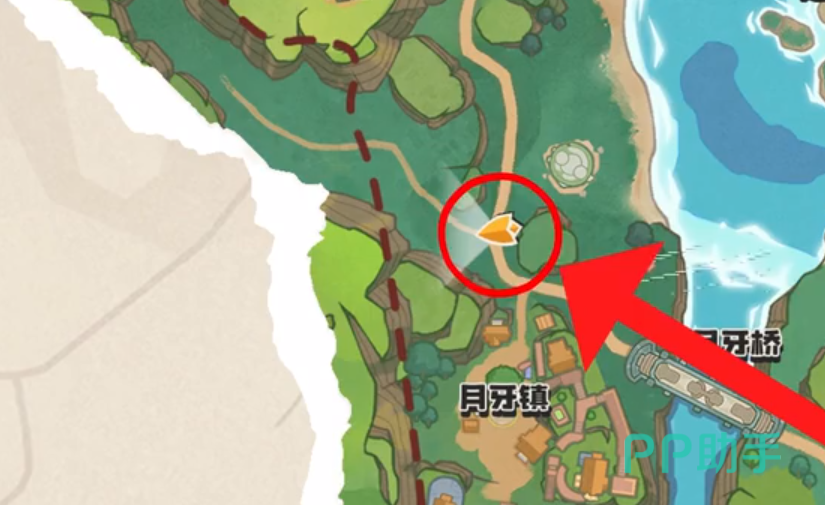第二位在月牙镇的上方,我们可以先传送到月牙镇的魔力之源处,过了月牙桥后,在下图的这个点位就能找到魔法师威顿,他携带的精灵有脆筒甜甜、绿耳松鼠、闪电环、布鲁斯。