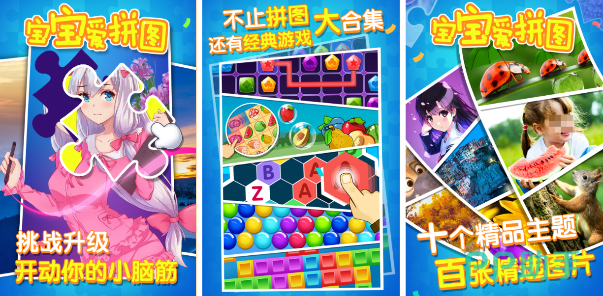 这款适合宝宝们挑战的拼图模拟游戏玩法十分多样,拼图模式、消除和泡泡龙等休闲模块等待孩子挑战,几百张新鲜美观的图片也可以拼凑,多元化休闲玩法跟温馨的内容展现都是亮点,操作机制尤为丝滑并不设有高难度的关卡,休闲放松的拼图气氛呈现也是低龄孩子的最爱,对拼图游戏感兴趣的低龄孩子赶紧来玩吧。