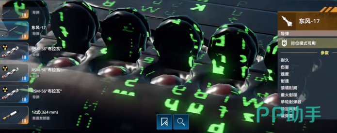 布拉瓦导弹:这一个导弹还是比较有特点的,速度比较快,而且还会提升突防率。装填的时长比较长,一般都会有半分钟左右,会限制输出的效率。