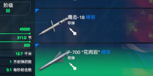 花岗岩导弹:会结合自身以及布拉瓦的特点,拥有较高的单发耐久度,爆发性伤害还是非常可怕的。飞行的速度合格,在配合不俗的耐久度之后,在这种情况下还会拥有一个优秀的突防能力,玩家可以选择合理的利用。
