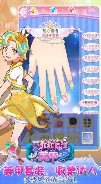 游戏里准备了超多blingbling的美甲材料,从闪到晃眼的指甲油,到各种精致的小饰品,应有尽有。你可以随心所欲地搭配出独一无二的美甲造型,就像个真正的美甲设计师一样。最让人惊喜的是,游戏里还藏着七大主题套装,每个都美得让人挪不开眼。不管是甜美风、酷炫风还是华丽风,都能在这里找到心头好。