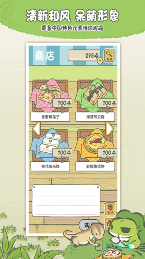 这款游戏让大家拥有一只忠实的宠物小青蛙,这只小青蛙非常好养活,就算你长时间没有上线游戏,它也会自动地游历全中国,待到你下一次上线,就可以欣赏小青蛙所拍摄的风景照,对各地方的特色美食、特色景点有了极大的认知。游戏里,小青蛙还会写日记,十分的富有灵性,大家也会被他所治愈。