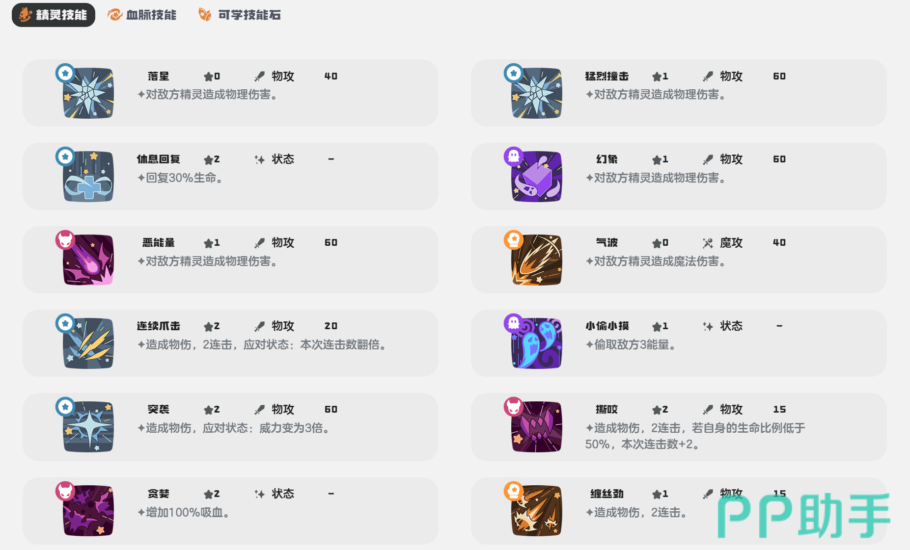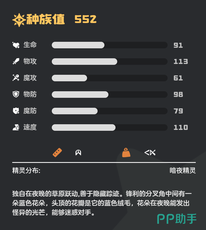 花影羚羊的种族值是552,作为一支羚羊外形具备独特的魅力,在战斗中实力也是不容小觑的。其实它的机制相对独特,作为恶性的宠物,在释放技能时可以瞬间让敌人失去4点能量。另外自身的威力效果却增加20。