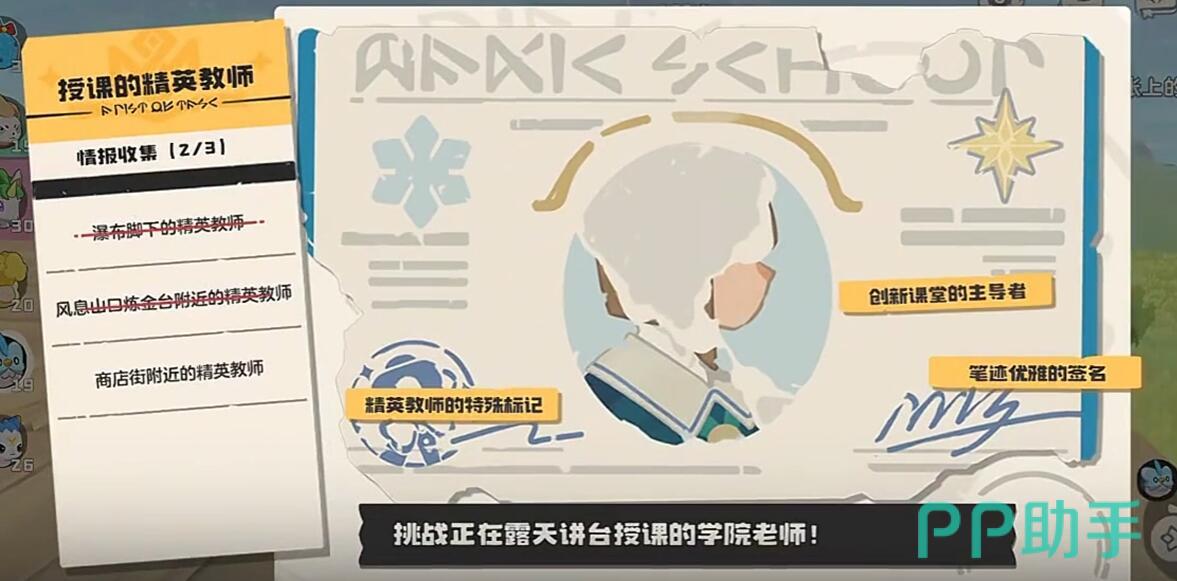 该任务属于王国法师之谜支线的第三阶段,需先完成追随冒险家的学生与路边带精灵的魔法师两个前置任务。与NPC可莉西亚对话后,任务提示会更新为寻找三位精英教师,若未解锁该阶段,就一定是主线进度是否达到月牙镇探索章节的问题。