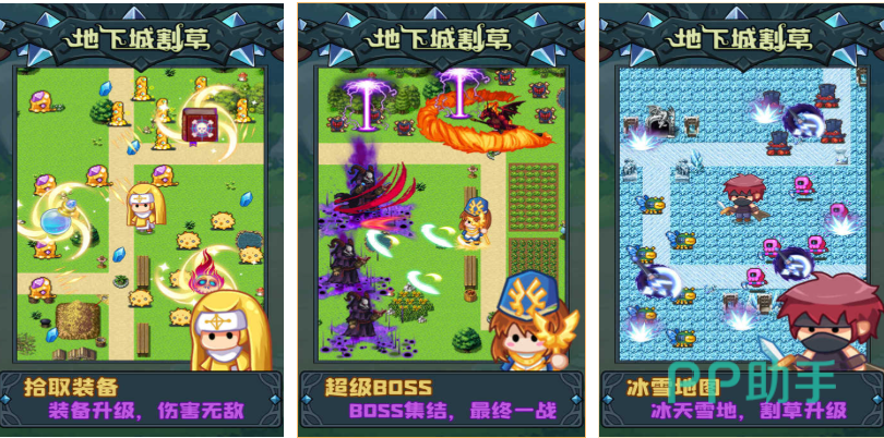 本作是款操作轻松也具备异次元元素的割草神作,游戏画风细腻也具备割草强化自身的设定,角色采用可爱风格跟地下城背景交相呼应,欢快割草战斗的乐趣令人回味无穷,角色可自动释放技能或使用武器战斗,你也仅需负责角色移动就可以了,地下城、冰雪城镇等多样割草地图让游戏的可玩性更高。