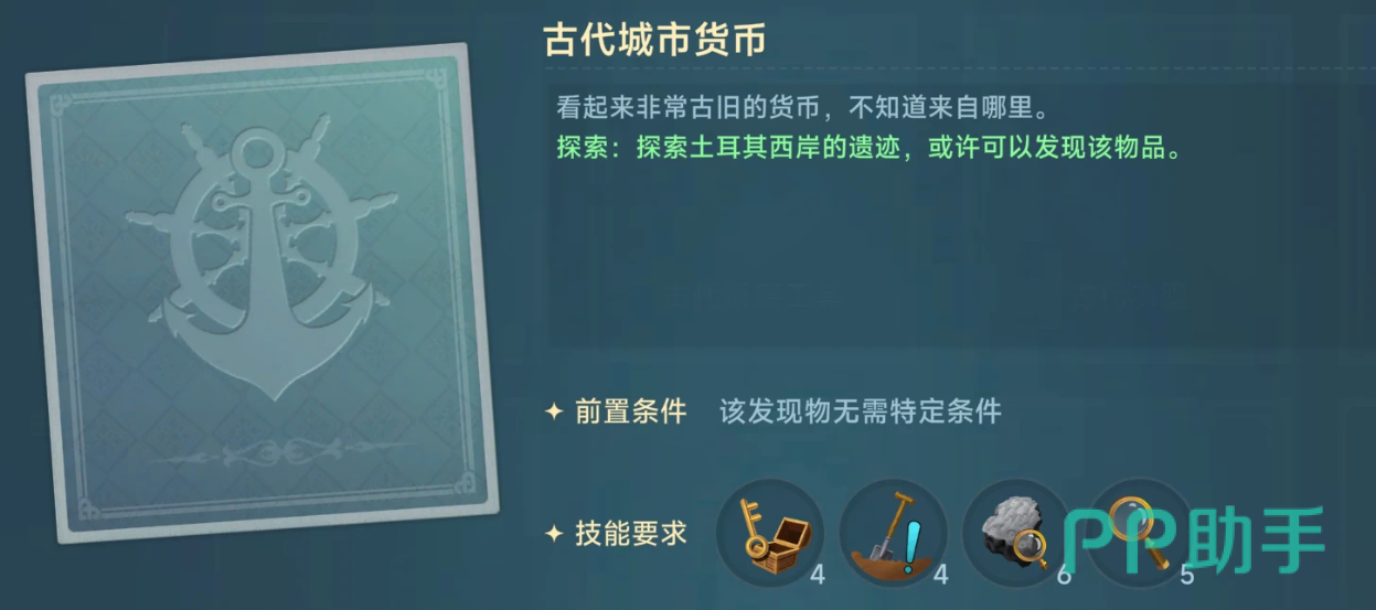 不过在前往之前,玩家还需要满足考古10、观察5、开锁8和搜索8的前置条件并且在这个基础上,观察越高越好,这样更容易发现线索,确定满足条件后就可以开始土耳其西岸的冒险了。