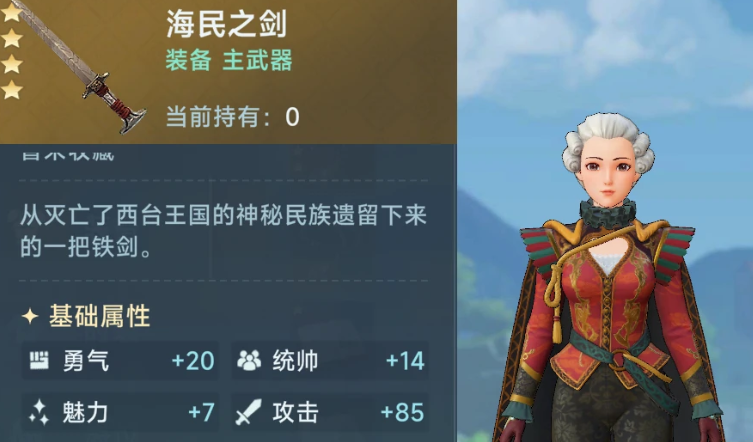 以上是大航海时代传说海民剑的获取方法,这件装备能给我们附带25点的攻击加成,还能提供剑术、勇气、魅力、统帅和划船的属性点,是在海战中非常适合作为排船追击的主力武器,想要的一定要按照以上方法耐心去做。