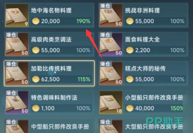 解锁12级烹饪后,前往牙买加购买《加勒比传统料理》食谱。准备材料:巨骨舌鱼1、粗盐3、迷迭香*2。粗盐通过里斯本盐田生产,迷迭香在巴伦西亚交易所采购。