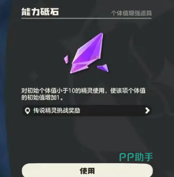 这个道具对个体值小于10的精灵使用,能让该数值直接加1,后续升级也会持续提升,不过比较推荐大家在精灵等级低的时候使用,否则会吃不到升级带来的提升,所以也就是说个体值差异,一旦成长了就无法改变。