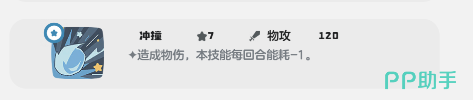 120点的物理攻击冲撞是一种耗能非常低的技能,在每个回合使用该技能都可以直接减少1点的耗能。