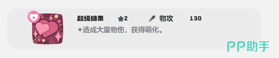 超级糖果属于可以给对手造成大量物理伤害的技能,技能伤害为130点,而且该技能使用后帽兜娃娃还能获得萌化的效果。