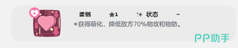 柔弱能让帽兜娃娃直接获得萌化效果,该效果能直接把敌人的物理攻击和物理防御给降低70%。