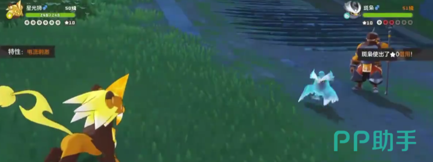 第三只精灵为翼系血脉的斑枭,我们使用的精灵就不能在用瞌睡王了,可以选择电系的精灵,正好克制翼系,至于精灵选择上星光狮子就比较不错。