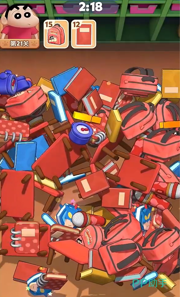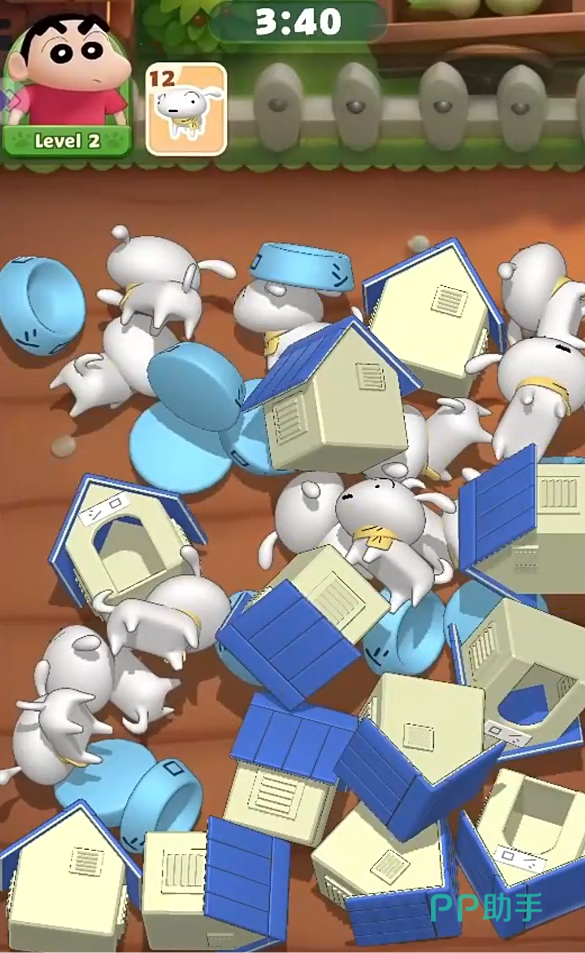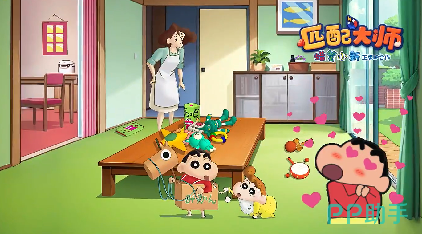 进入游戏后会以漫画的形式展开全新的剧情,随着美牙教训蜡笔小新之后,就可以来到正式的关卡中了。并且会进入一段新手教程,刚开始的节奏很慢,并且要求也不高。只需要点击相同的图形之后,即可成功消除一样的道具。