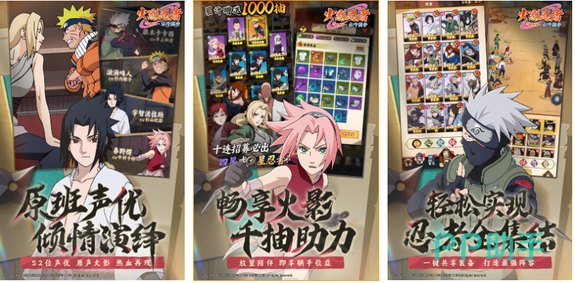 本作是火影主题的卡牌PK类日漫改编作品,多元化的抽卡玩法和丰富剧情演绎都是亮点,原班声优会让每一个角色的语音效果更硬核,各种杜撰的新颖剧情也给火影粉丝带来新鲜感,火影系列忍者全部集结带来强烈的满足感,一千连抽轻松获取道具和忍者的设定令人直呼良心,各位火影迷可试试这款抽卡主题的漫改佳作。