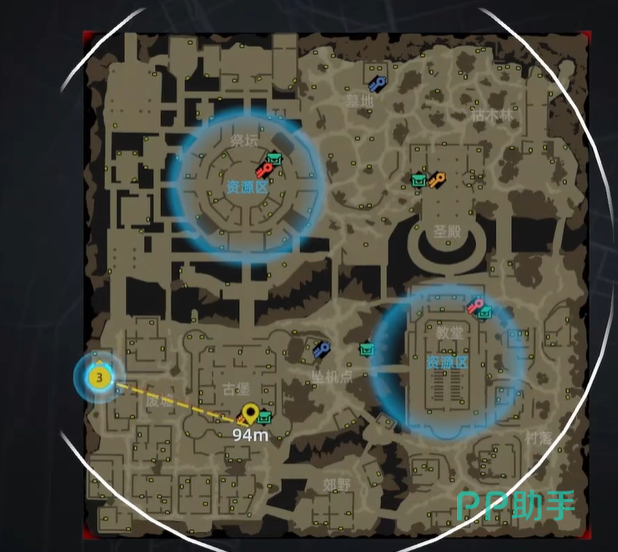 毒圈是可以直接通过地图内看到的,在地图上会有一个很大白色圆圈,这个圆圈内代表是安全区域,而蓝色区域代表资源区,而玩家需要在这个白色圈里进行移动,需要在资源点地方拿到强力武器,然后再层层怪物的包围下逃离出去。