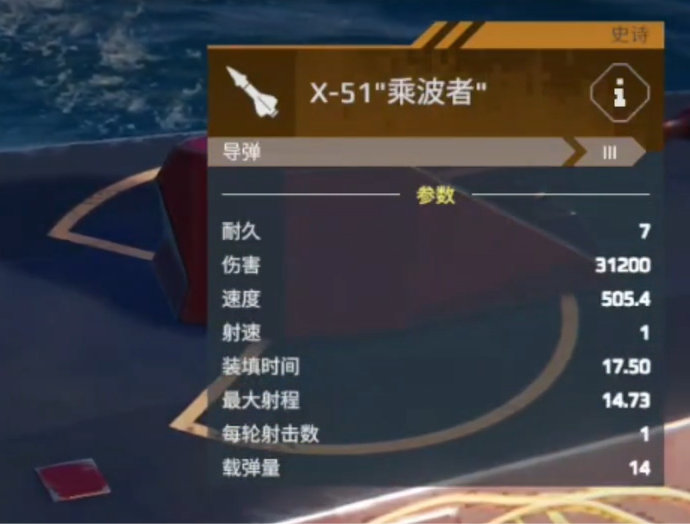 至于导弹方面的话,这里更加推荐大家用x51乘波者。能够增加多达3万点的物理伤害,也可以更快的飞向对手的位置,几乎让人避无可避。另外它的装填时间也短,就算你的火力暂时不足,,依然可以暂时休整并调整好战略方向,一次性的话可以容纳14个导弹。