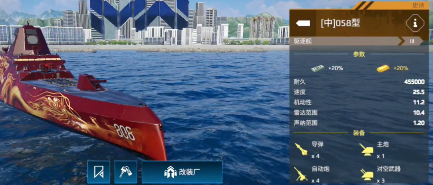 如果大家比较喜欢更加全能的战斗舰艇,可以试着了解现代战舰058驱逐舰怎么样?驱逐舰是一辆颇为灵活的舰艇,并且拥有更高的颜值。在战斗中可以成为一道亮丽的风景线,然后可以随着强大的炮轰能力,不断的消灭周围的对手。