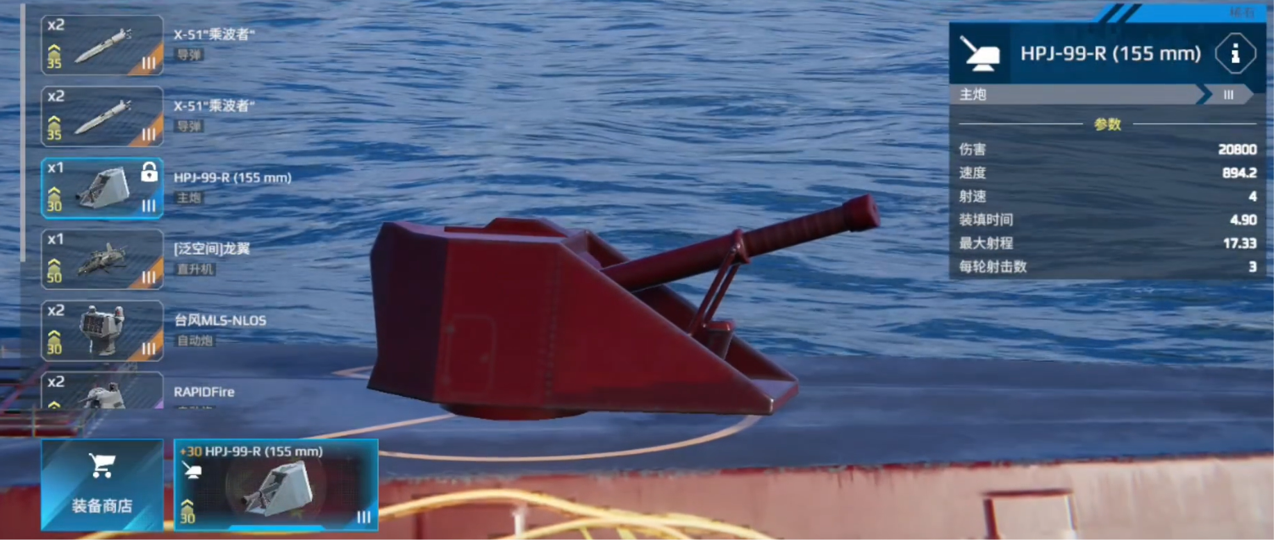 当然除了基础属性之外,大家也要装备好相应的配件之后,才可以彻底发挥出驱逐舰的能力。至于主炮的话,推荐大家使用HPJ-99-R。它的伤害就可以直接到达2万点,另外设计速度也很快,能够大幅度提升驱逐舰的火力,令人无法忽视。