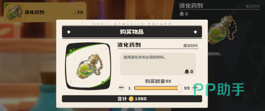 但这个时候得到的液化术是无法使用的,还需要一种材料才能使用,为了这一材料,我们先传送到商业街的炼金台,抵达后找到商业街的博得进行对话,购买好他这里的液化药剂就能使用了。