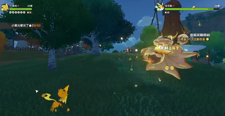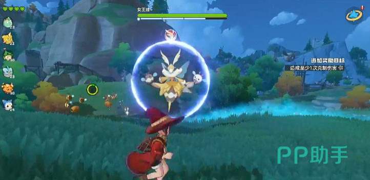 但趁着这个机会我们可以靠近女王蜂的本体进行破盾,等首领护盾被击碎后就会进入到第二阶段的精灵对战,女王蜂的属性是虫加翼,我们使用翼系和火系的精灵攻击虫系敌人能打出双倍伤害。