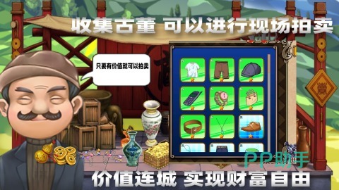 《古董拍卖行》日新月异的把拍卖作为了游戏题材,其中囊括的游戏玩法,更是呈现了诸多妙不可言的趣味,你将一名当铺老板的身份,凭借着你独具慧眼的能力,与发现各种价值连城的文物,与其他的竞拍者,来展开激烈的竞争,不要去错过任何一次拍卖的机会,运用你的花言巧舌,去低价购买性价比较高的商品。
