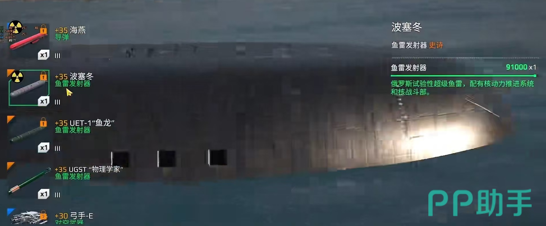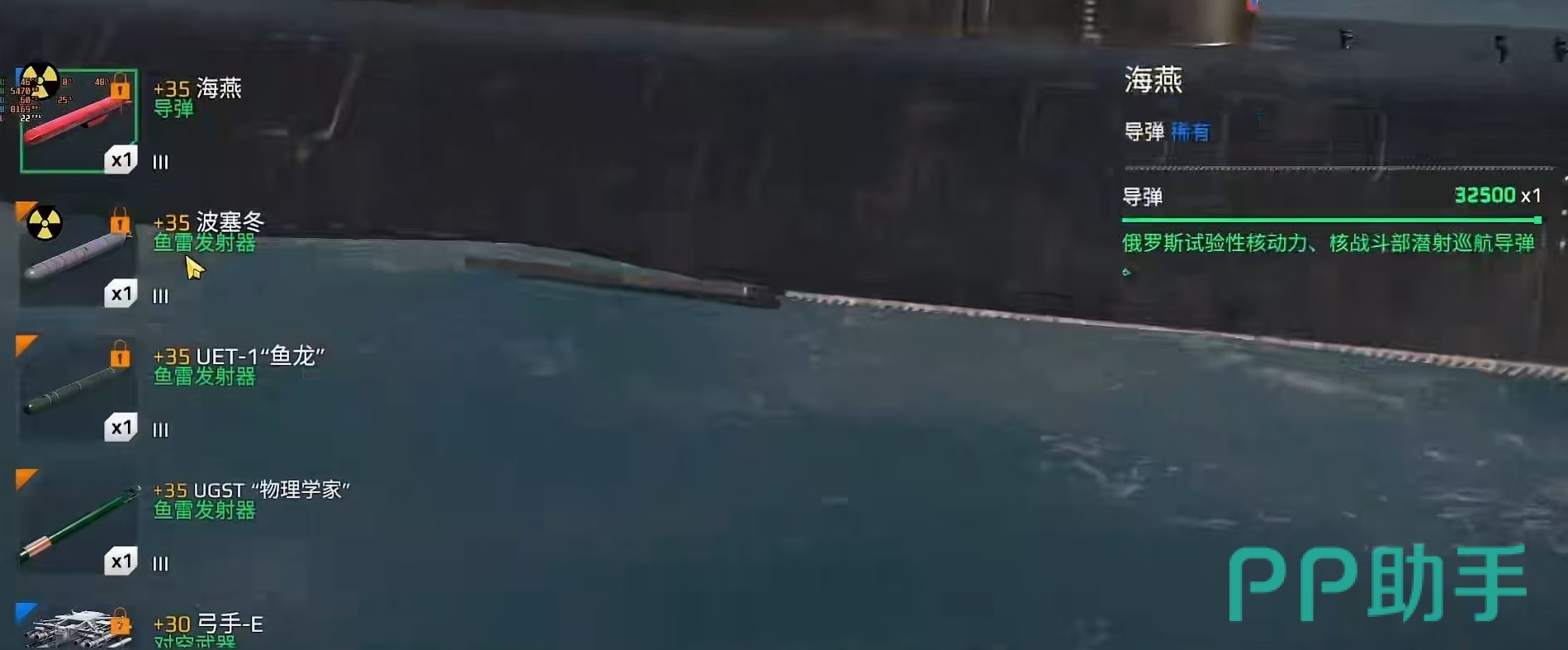 先来看下别尔哥罗德的基础数据,耐久方面40万左右,速度16.4节,从耐久和速度来看还是有着一定的优势,尤其是速度比俄亥俄要高一些,潜艇速度非常关键。其实这个潜艇令很多玩家认为它比较变态的地方,就在于它的各种核武器,包括波塞冬鱼雷发射器,海燕导弹等,这些都是非常有特点的地方。