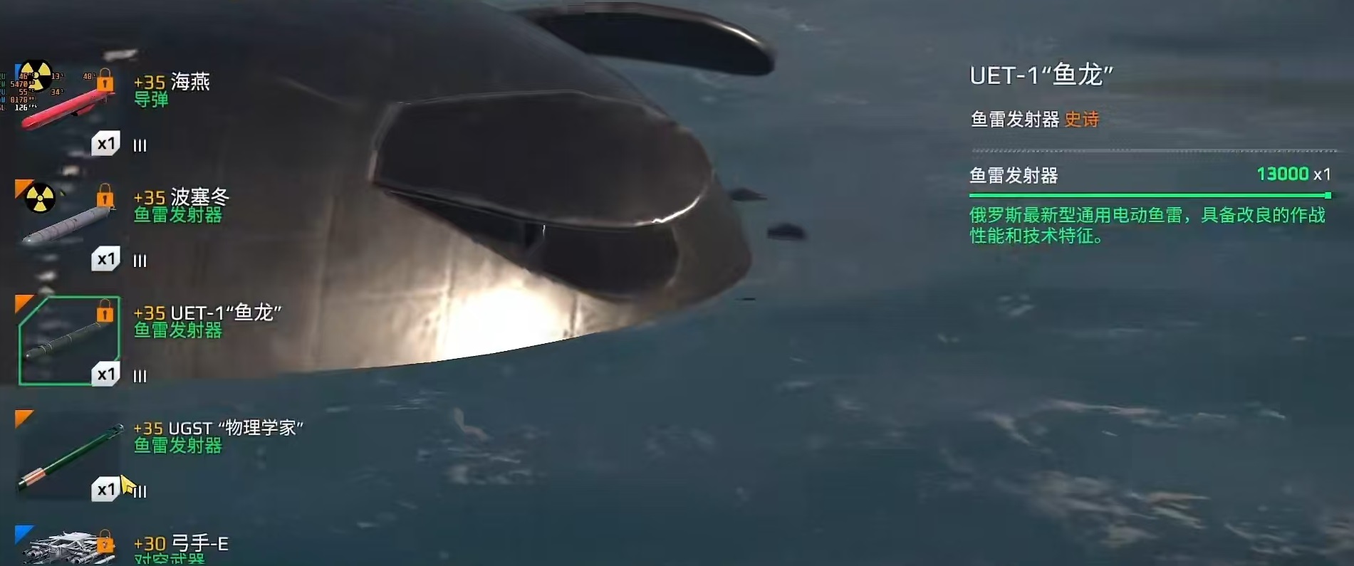 它所配备这些强大武器装备可以对敌方舰艇造成巨大的威胁,尤其是在对方没有特别加上反潜武器的情况下,更是容易被打掉较多的血量,这也是很多玩家纷纷反映它比较变态的原因。而且作为核潜艇,它在水下还具有出色的隐蔽性,可以更好地接近敌方发动突然袭击,较长的续航能力绝对是一项优势。但是他也有比较多的劣势,首先是机动性一般,虽然比部分潜艇要强,但依然属于体型比较大的一类,机动性不如小型舰艇,加速转向也相对迟缓。