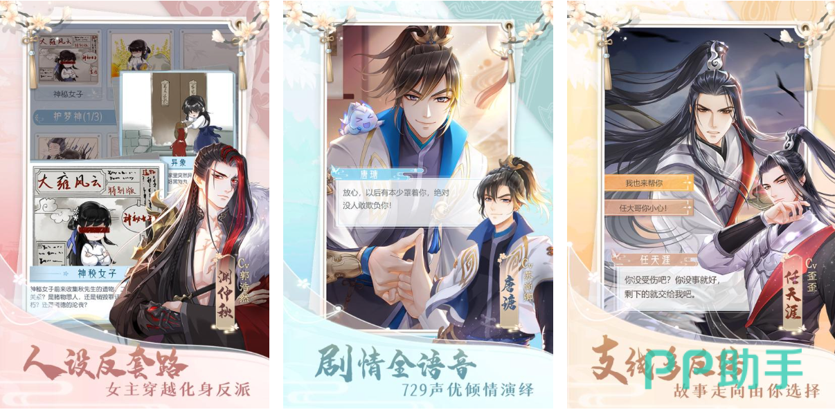 这是一款偏向经营类型的乙女游戏,玩家在游戏中需要将自己的门派壮大,还会遇到几位性格各异的徒弟,并且和他们在日常生活和外出历练中增进感情。这款游戏是古风仙侠背景,所以整体的画面都带有国风之感,并且游戏的配乐也很出色。同时,除了最常规的经营玩法之外,玩家还可以在其中探索单人情感副本、水镜主题出游和旅行收信等多种玩法。