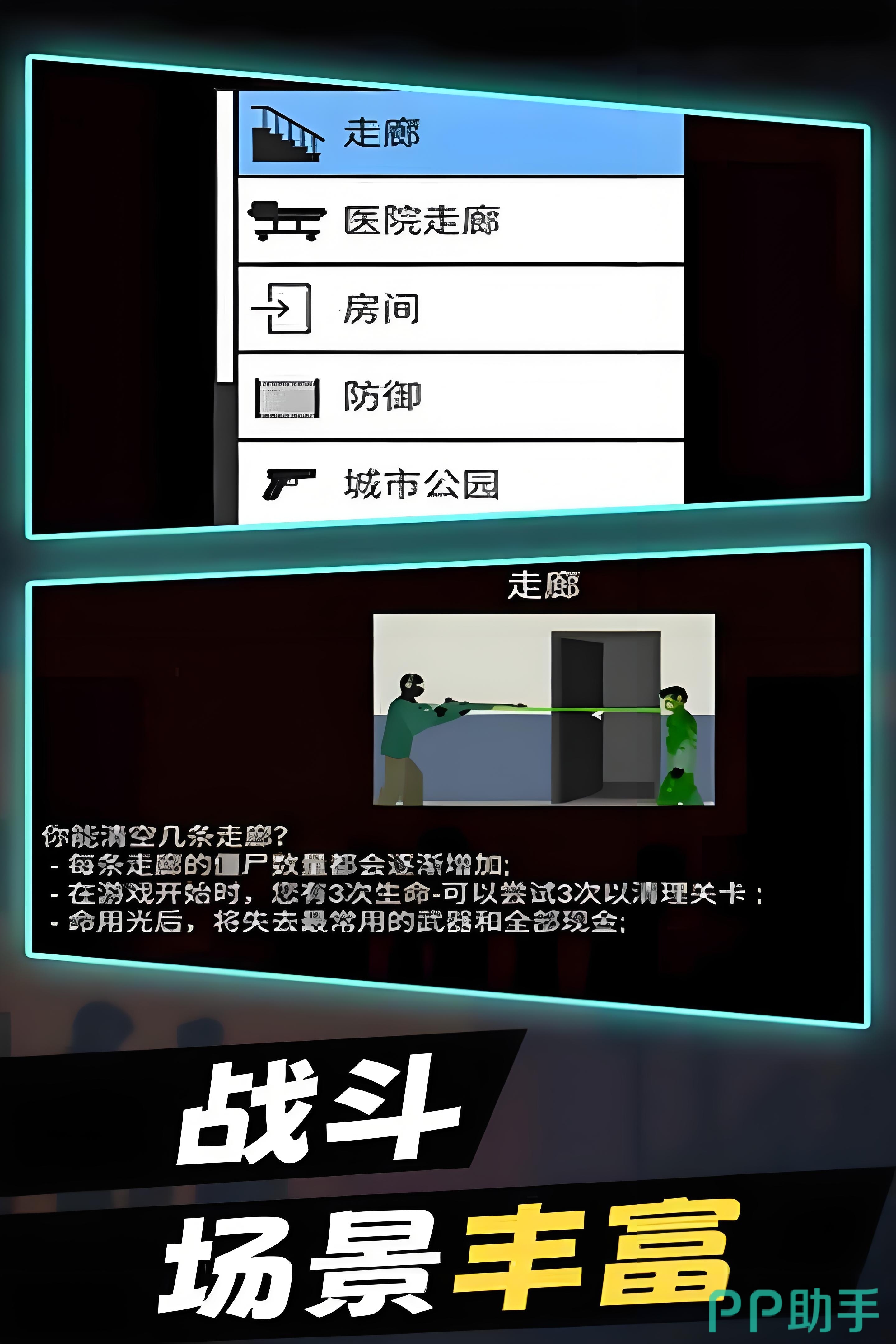 《平面僵尸》是一款横版画面的僵尸射击游戏,在游戏中,玩家通过控制角色的前后移动和发射子弹来击毙僵尸大军,游戏中有各种枪支武器和装备可供玩家选择并穿戴,而且在有限的画质中各种武器的形态和优点还是进行了比较完美的还原,并且游戏中战斗场景和玩法模式非常丰富,每一局都是一条命加上有限的弹药,大大提高了玩家们的刺激感。