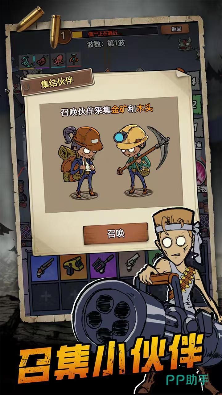 《全民僵尸大战》这款游戏中玩家的基地是一个非常长的大巴,在大巴上可以装饰玩家收集来的各种物资,不管是防护网还是铁块都可以随意布置,游戏中的可玩区域是需要玩家逐步解锁的,每一块地图不仅场景不同,所遇到的僵尸种类和击杀难度也不同,游戏中玩家可以建造自己的兵种队伍,还有铁桶、鸡尾酒等多种新奇武器来帮忙。